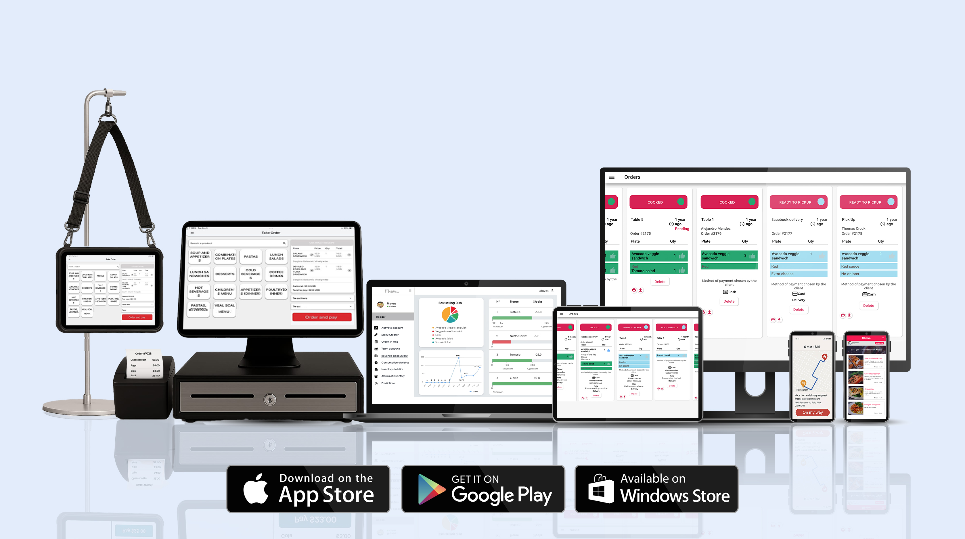 With Meniuu, your cashiers can take orders and process payments with ease, sending orders directly to the kitchen and reducing paper waste. Each cashier can have their own account, accessible from any smartphone or tablet, allowing you to track sales and inventory metrics in real-time. See more