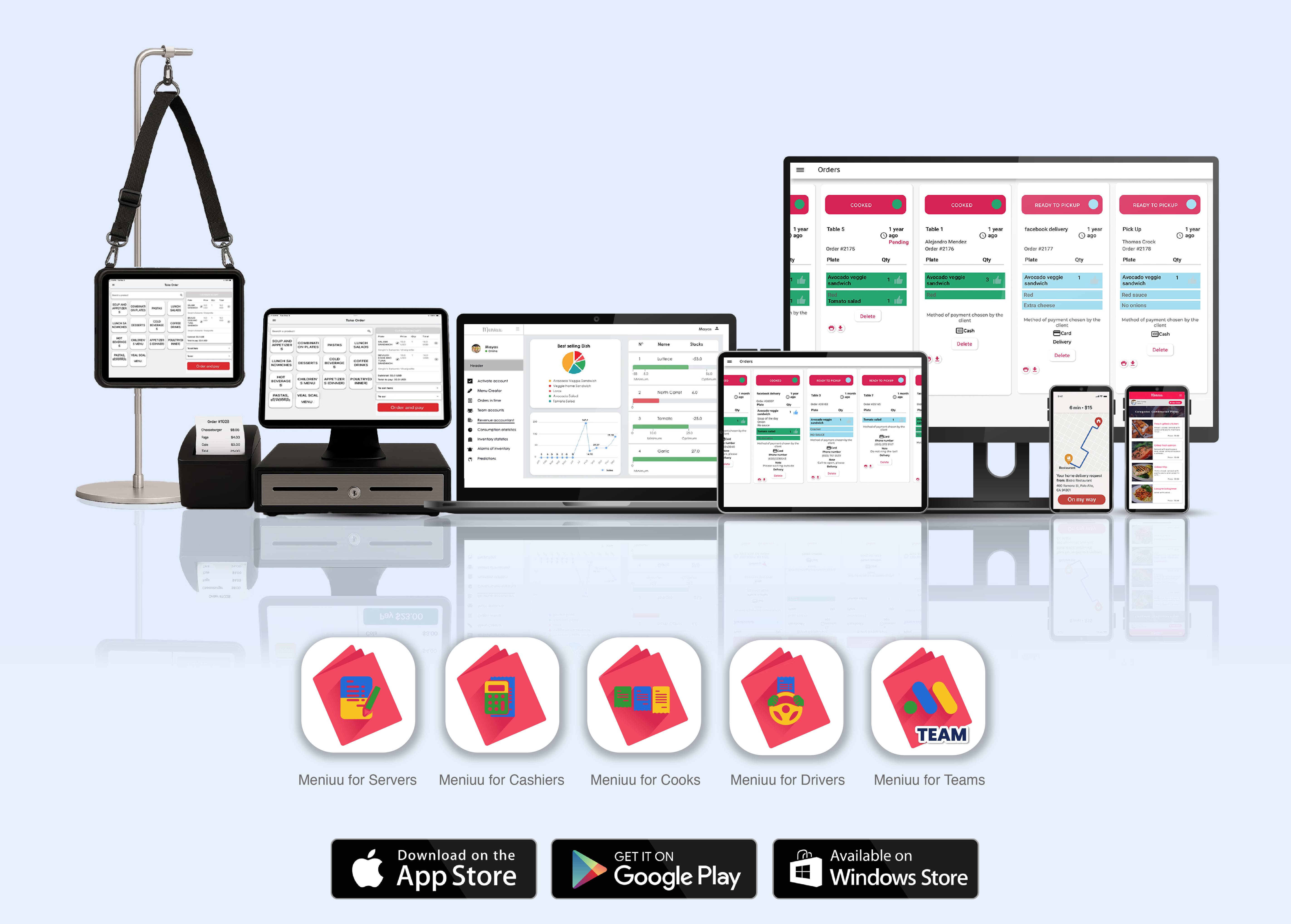 With Meniuu's Suite of Tools, your team can work together smoothly — servers, cooks, cashiers, bussers, hosts, delivery drivers, managers, owners and even customers — all in a truly collaborative workflow.